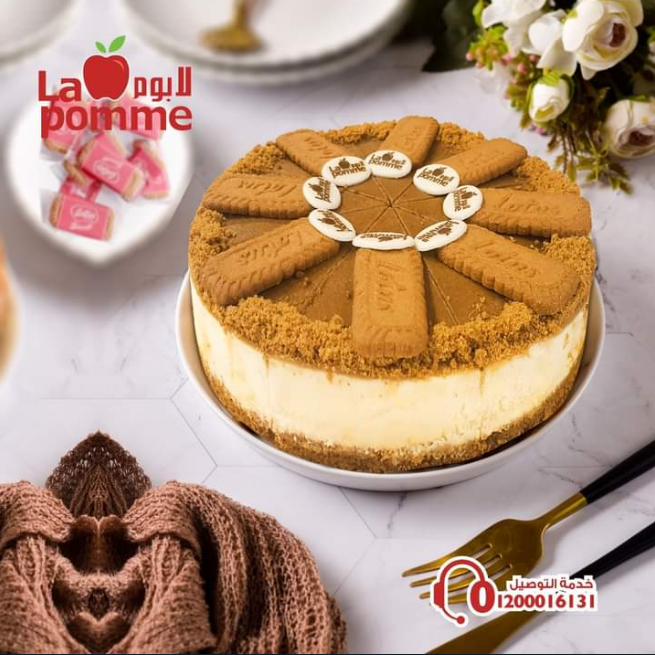 طبقة بسكويت لوتس وكريمة تشيز مغطاة بطبقة من زبده اللوتس وقطعه لوتس