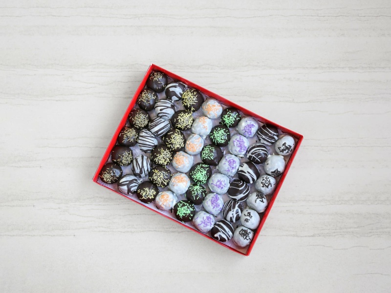 48قطعه من كرات الكيك المغطاه بالشيكولاتة المختلفة الاطعام و الاشكال